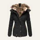 This women’s parka offers elevated winter warmth with its tailored silhouette and plush faux fur lining.