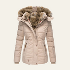 The cinched waist creates a flattering shape while the insulated quilted shell shields against the cold.