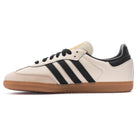 The SAMBA OG "Cream White Sand Strata" offers a soft yet striking design with its off-white upper and bold black stripes. The gum-colored sole and black heel panel enhance its vintage vibe, while golden logo accents add a subtle premium touch. Balanced and versatile, it’s a perfect match for clean and everyday styles.