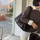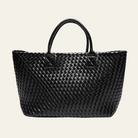 Women’s woven leather-effect tote bag designed for refined versatility and everyday sophistication. Spacious in structure and crafted with an artisanal weave, it embodies timeless elegance and durability. Perfect for city errands, workdays, or coastal escapes — a quiet luxury staple for modern lifestyles.