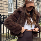 A womens faux fur jacket designed to bring warmth and elegance to seasonal dressing.